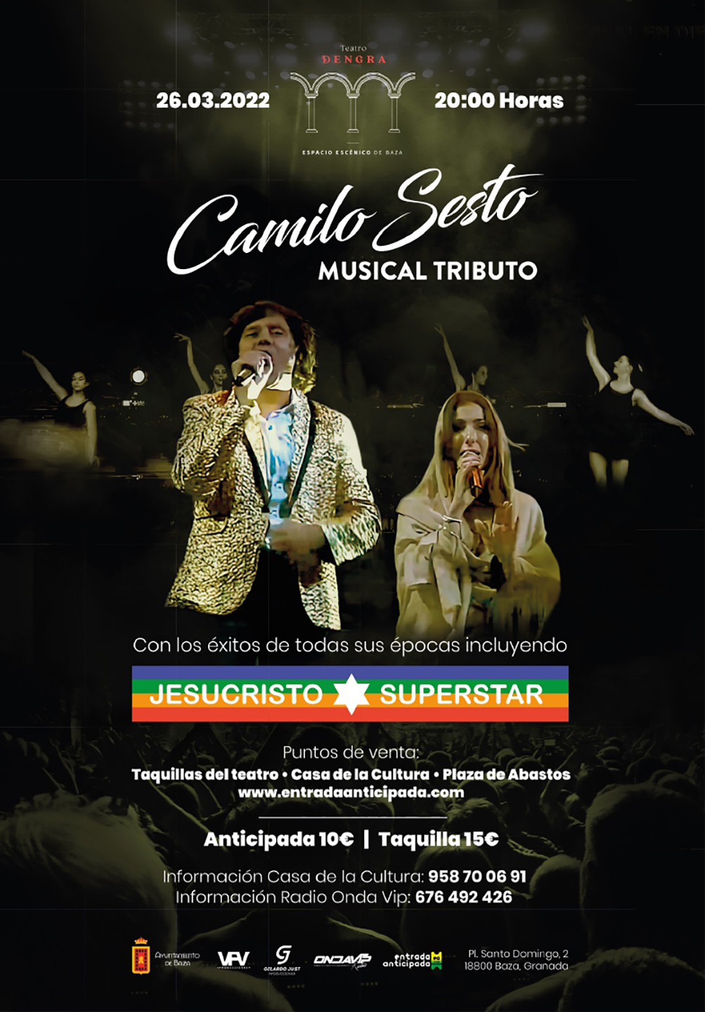 Cancelado el musical “Tributo a Camilo Sesto” previsto para este sábado 26 de marzo en el Teatro Dengra. El musical tributo a Camilo Sesto, programado para este sábado en el Teatro Dengra, ha sido cancelado por motivos ajenos al Ayuntamiento, según informaba ayer el Ayuntamiento bastetano en un comunicado.
