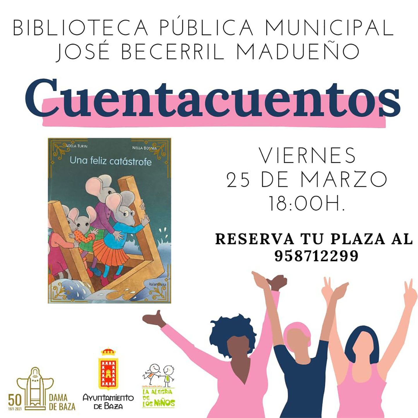 El cuentacuentos previsto para esta ocasión llega con la denominación de «Una feliz catástrofe», un título en torno al cual girará la narrativa en esta ocasión, la cual se celebrará este viernes 25 de marzo, con el añadido de estar incluida como uno más de los programados en torno a los actos sobre la igualdad que se están llevando a cabo en este mes de marzo, como parte de la programación elaborada en el marco de las actividades del Día de la Mujer.