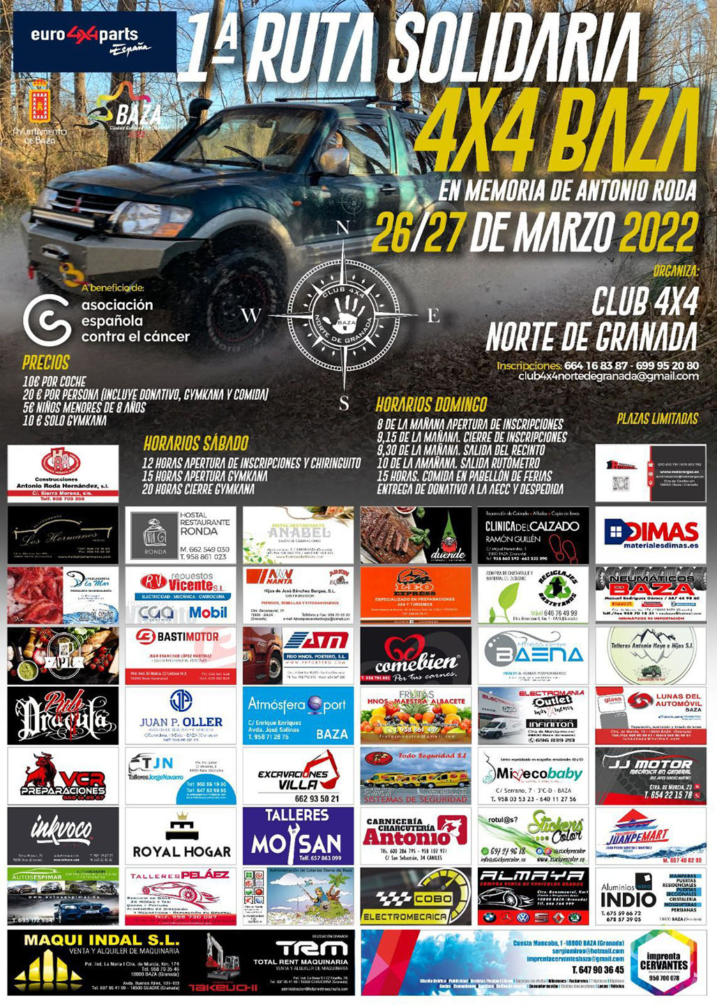El Club 4×4 Norte de Granada celebrará este fin de semana su primera ruta solidaria con al añadido de ser una actividad a beneficio de la AECC. Para este fin de semana, el Club 4×4 Norte de Granada nos tiene preparada la que será su primera ruta solidaria la cual se celebrará como una actividad a favor de la Asociación Española Contra el Cáncer y en recuerdo a Antonio Roda.