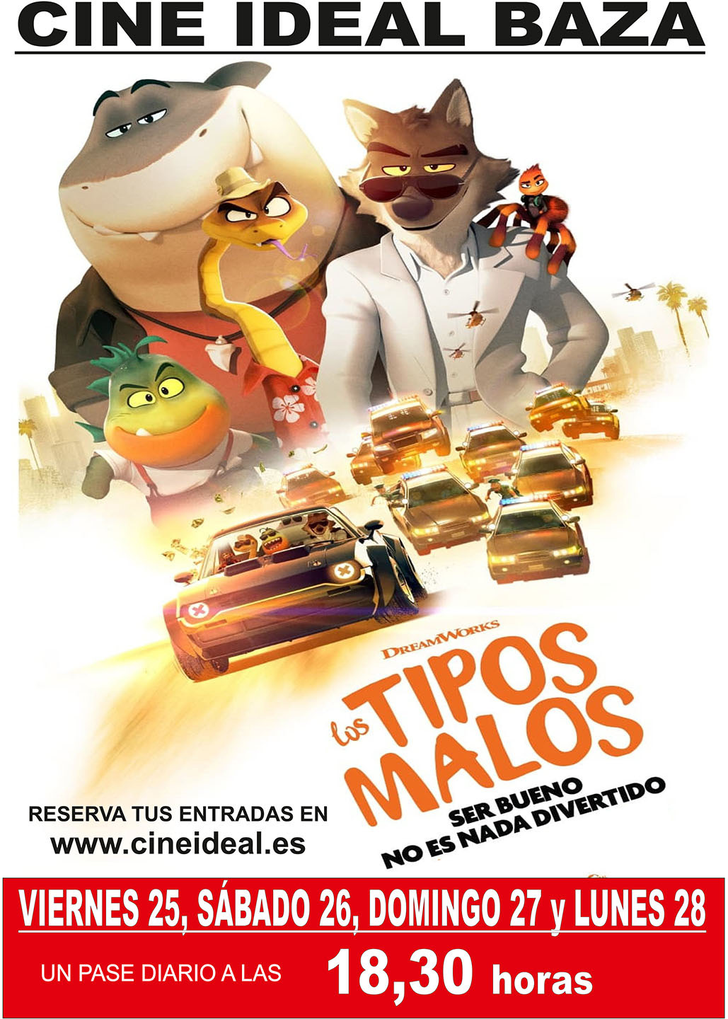 “Tipos Malos”, título del nuevo estreno que nos propone el Cine Ideal, desde el viernes 25 al lunes 28 de marzo. Una película que llega este fin de semana al Cine Ideal Baza, en lo que es una nueva propuesta de cine de animación, para disfrutar en familia desde el viernes 25 al lunes 28 de marzo, en una única sesión diaria, a las seis y media de la tarde.