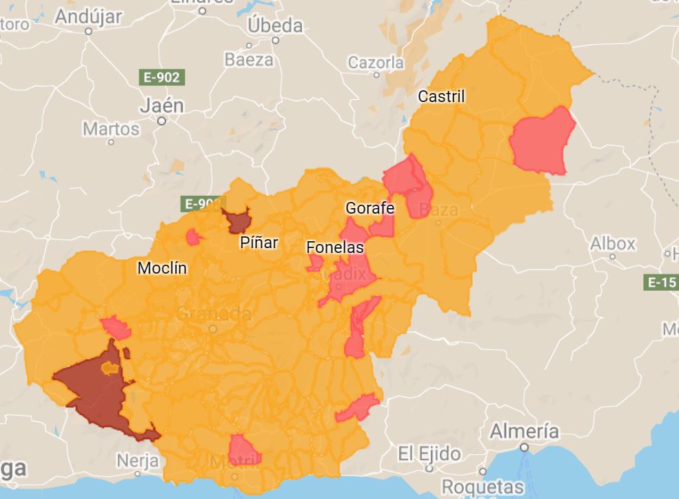 Sin embargo, en el distrito Nordeste no se han hecho excepciones ni se han producido cambios, a pesar de los numerosos municipios que han bajado ya de la tasa 250 y han pesado más las localidades que no han logrado bajar su incidencia durante la última semana, por lo que todos seguiremos en el nivel de Alerta 4 Grado 1, a pesar de que solo diez demarcaciones superan la ‘tasa 500’: Aldeire, Benalúa de las Villas, Cuevas del Campo, Guadix, La Calahorra, Moraleda de Zafayona, Orce, Ugíjar, Vélez de Benaudalla y Zújar.