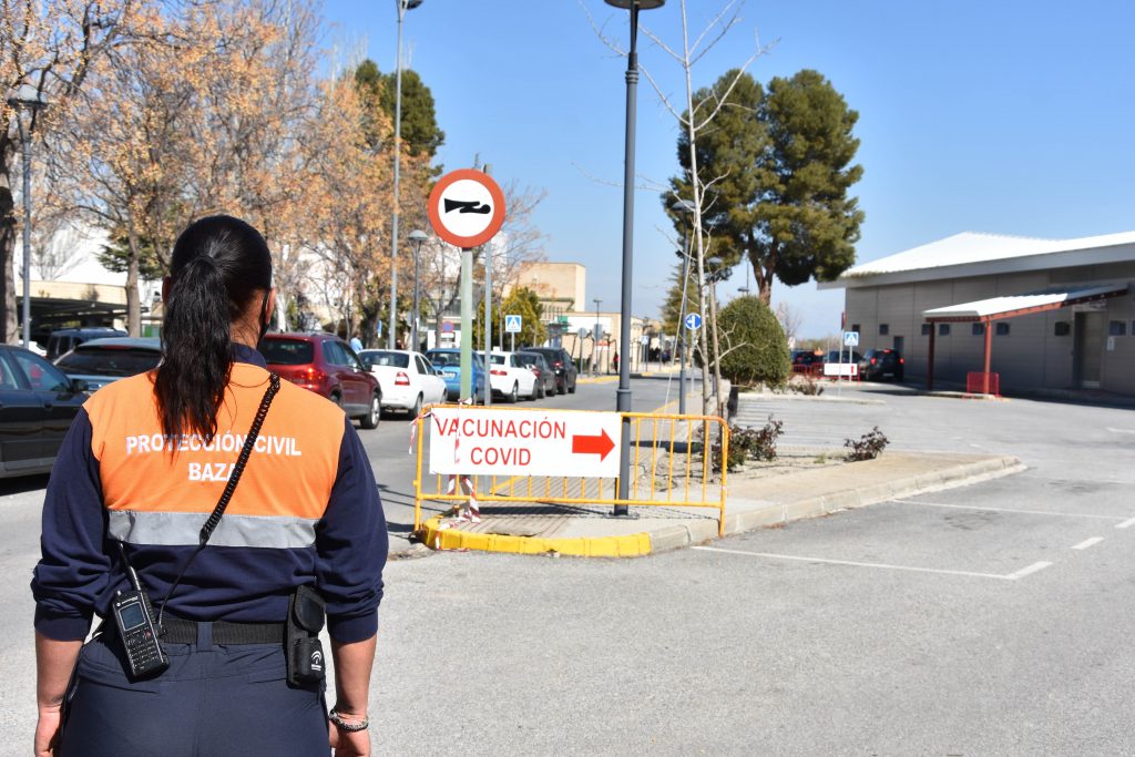 La Agrupación de Voluntarios de Protección Civil colabora en las jornadas de vacunación del Hospital de Baza. La Agrupación de Voluntarios de Protección Civil de Baza está colaborando en las jornadas de vacunación contra el COVID-19 que se están realizando en el Hospital de Baza desde los coches.