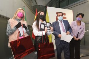 El presidente de la Diputación de Granada, José Entrena, ha entregado esta mañana, junto a la diputada de Igualdad, Juventud y Administración Electrónica, Mercedes Garzón, el premio a las ganadoras del VII Concurso de Microrrelatos contra la violencia de género “Mónica Carrión” con motivo del 25-N, Día Internacional para la Eliminación de la Violencia contra las Mujeres.