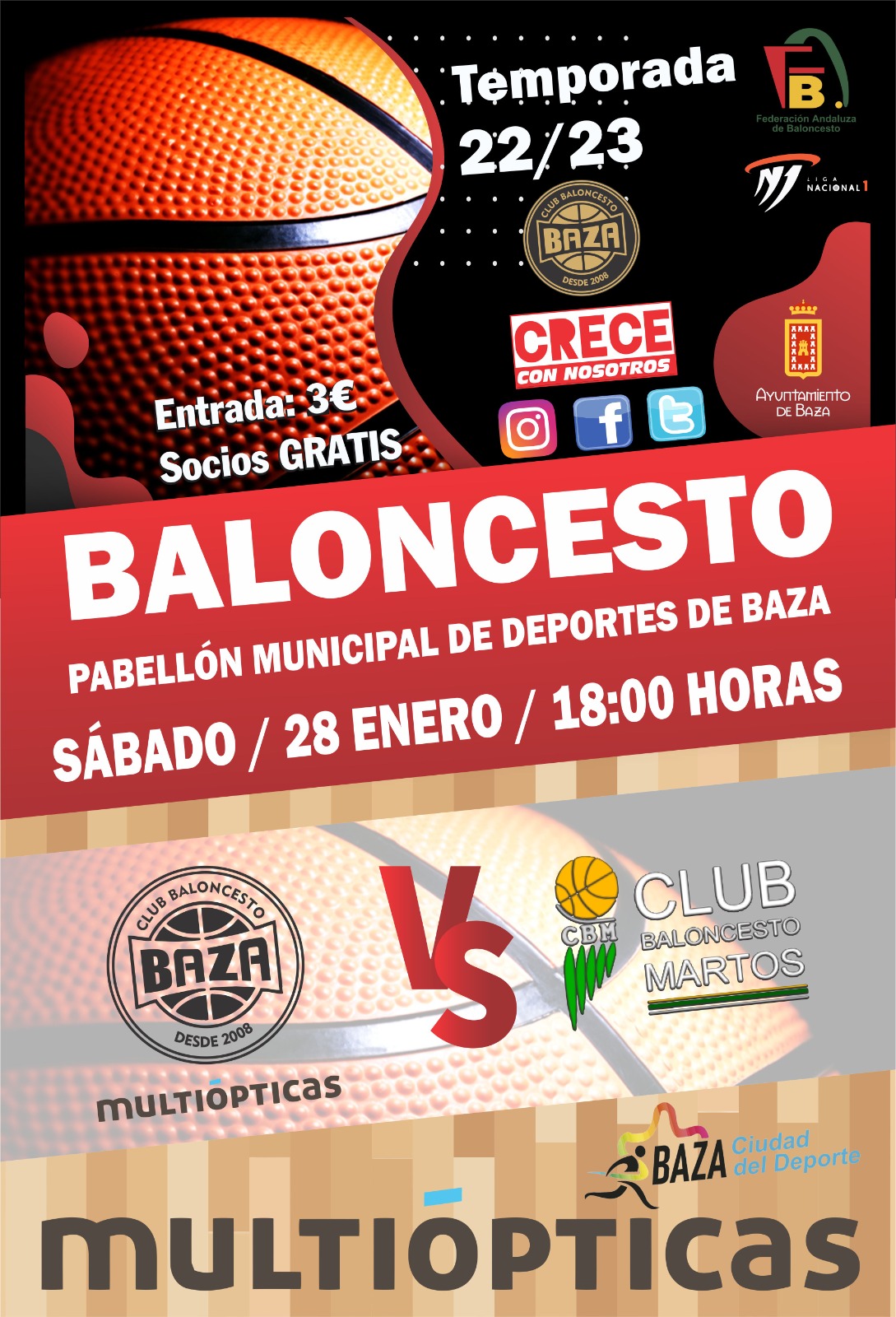 El Multiópticas Baza recibe al CB Martos en un encuentro que se presenta como clave para las aspiraciones del conjunto bastetano. Partido clave el que disputará este fin de semana el Multiópticas Baza, ante un rival de entidad como es el CB Martos, dos equipos que seguramente estarán luchando hasta el final por meterse en los puestos de play off de esta interesantísima liga nacional.