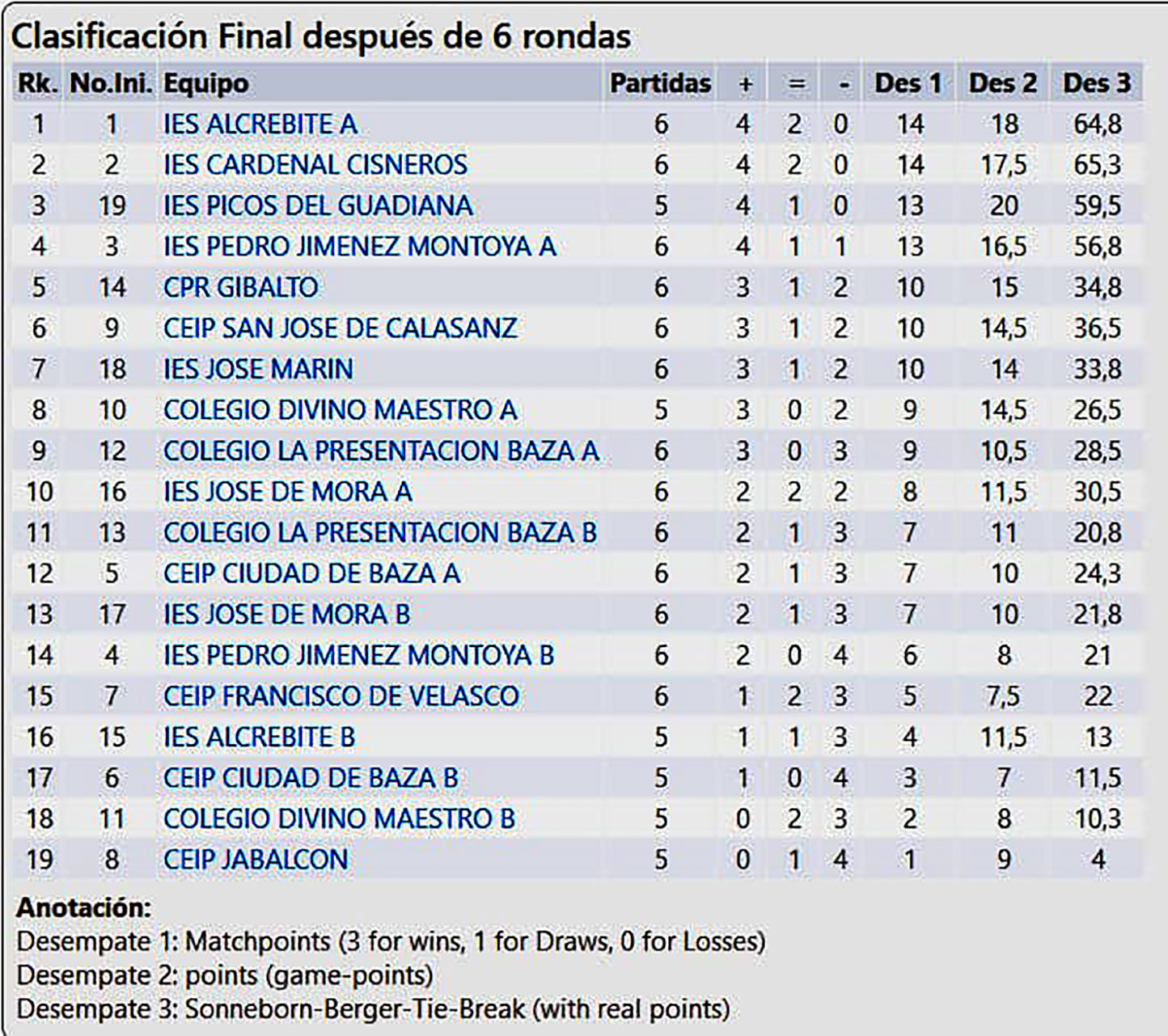 Con la suma de la puntuación de todas las categorías, resultó ganador el centro IES Pedro Jiménez Montoya, seguido del Colegio La Presentación de Guadix y del Colegio Divino Maestro bastetano.
