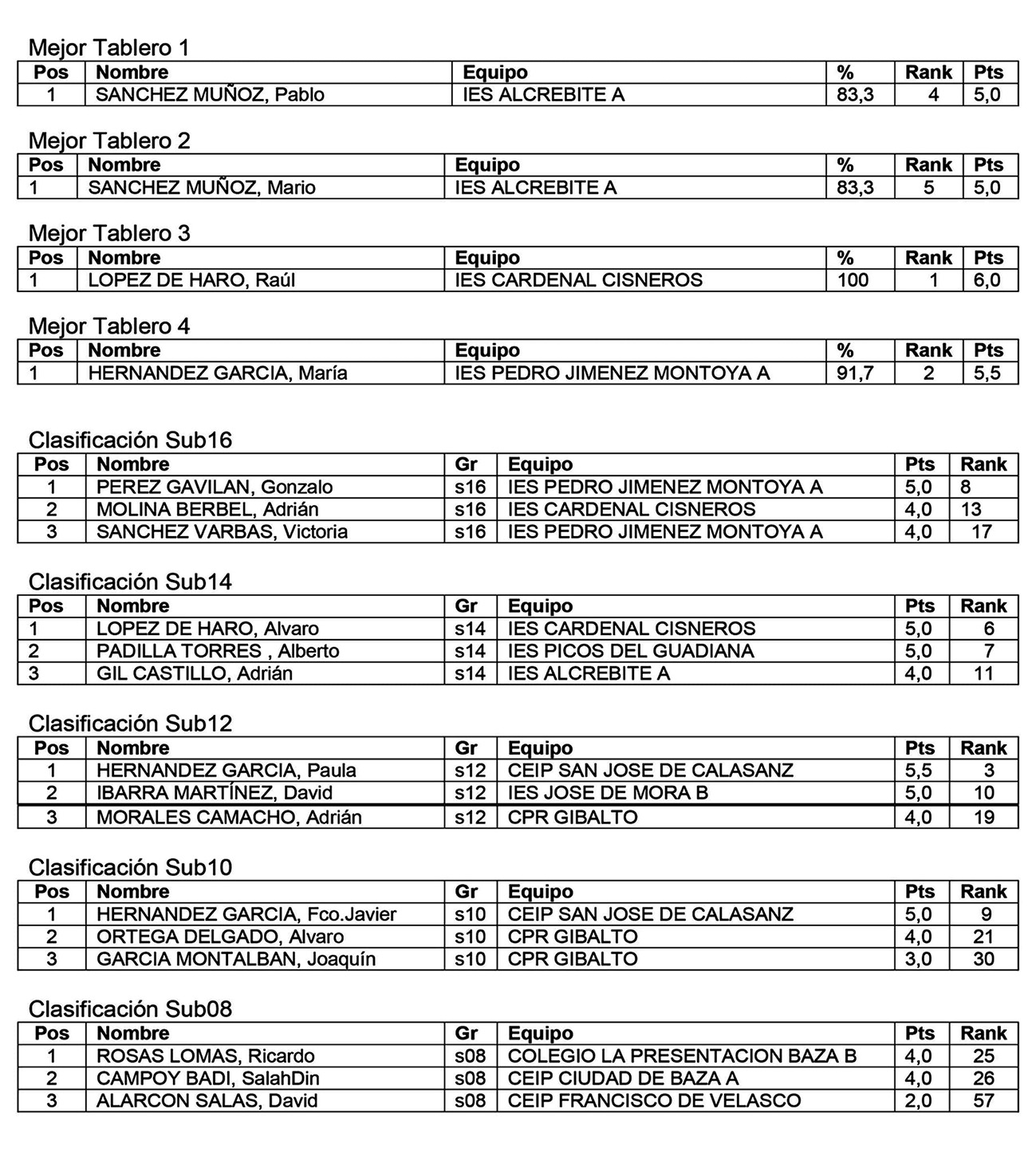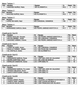 - Sub14: 1º Andrés Sánchez, 2º María Hernández, 3º Salustiano Pérez