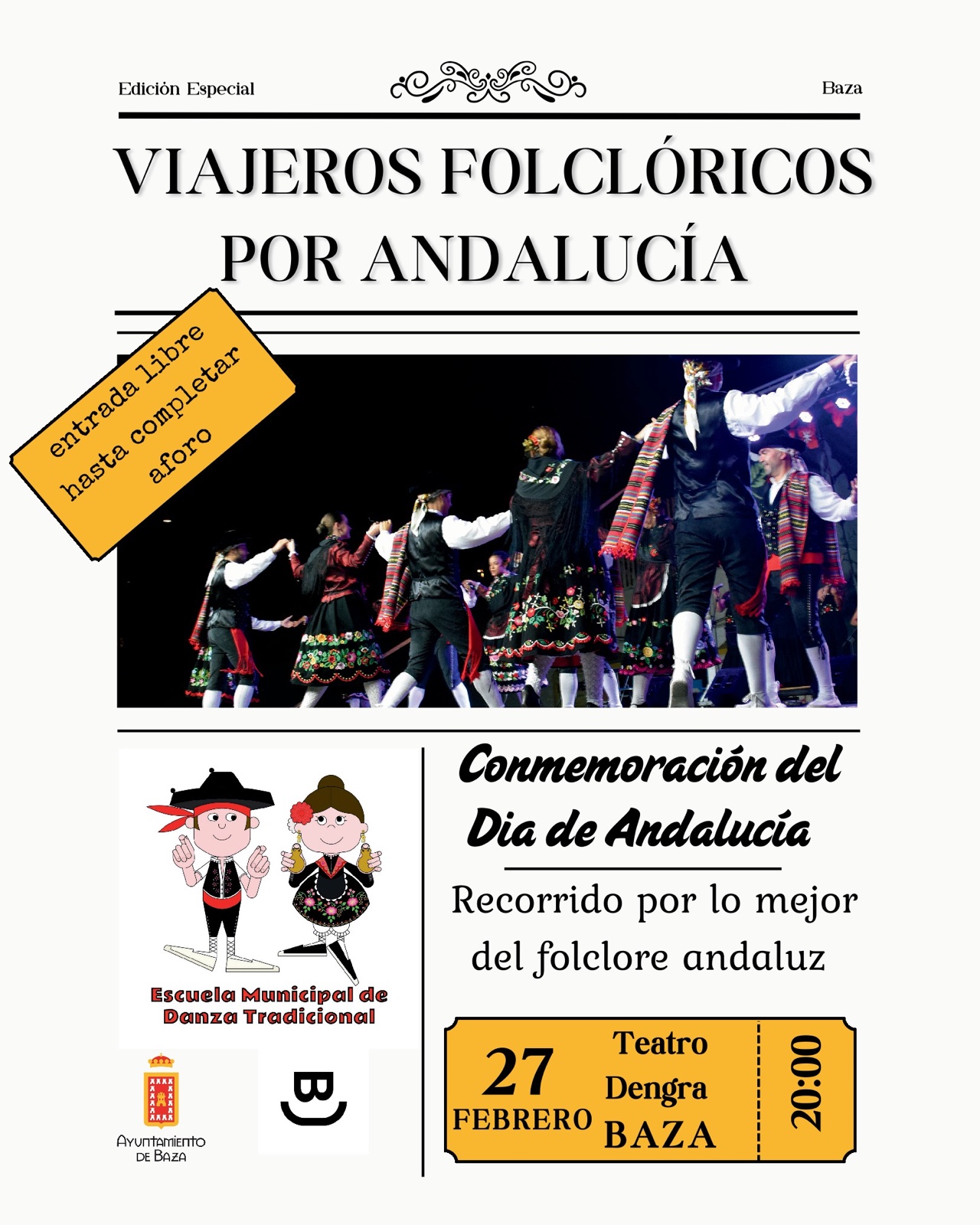 Con estas dos propuestas, Baza reafirma su apuesta por la Cultura accesible y de calidad, para conmemorar una fecha clave en el calendario andaluz. La combinación de danza tradicional y música popular convierte el fin de semana en una invitación abierta a celebrar la identidad, la historia y el patrimonio cultural de Andalucía, a través de sus manifestaciones artísticas más representativas.