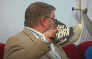 Vinieron después una abundante tanda de ruegos y preguntas, de la que procuraremos informar con detalle cuando dispongamos del sonido de lo comentado, si bien cabe destacar la anécdota del edil de IU con su calzado en la mano, para mostrar la prueba de haberse hundido en el hormigón de las obras que se realizan junto al Ayuntamiento, “reclamar” el costo de sus zapatos y presentar un ruego para que las empresas que realizan obras sean responsables a la hora de señalizarlas adecuadamente.