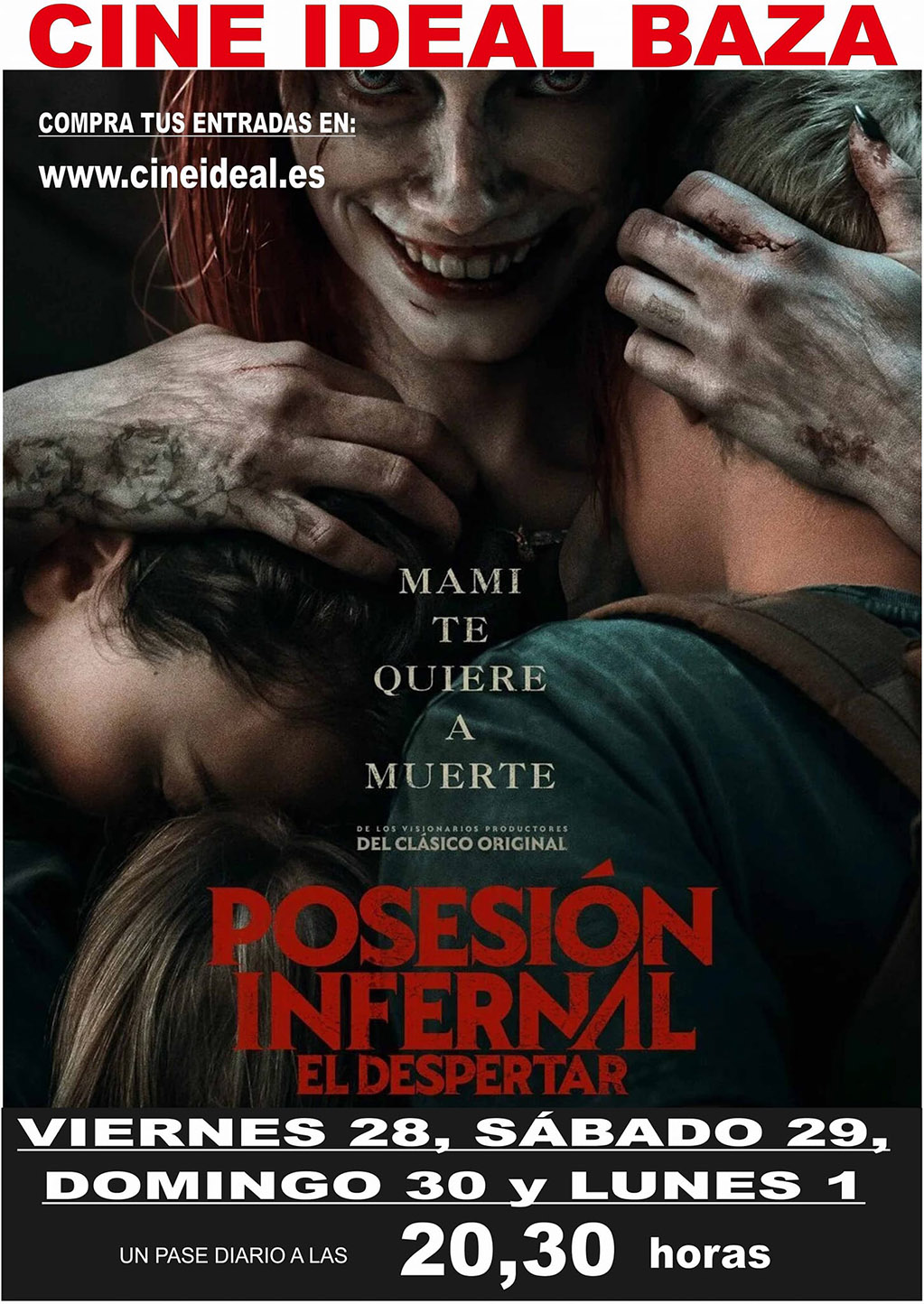 Turno para los amantes del cine de terror, este fin de semana en el Cine Ideal Baza con la película “Profesión infernal: El despertar”. Una película que se proyectará en el Cine Ideal de Baza desde el viernes 28 de abril al lunes 1 de mayo, en un único pase diario a las 20,30 horas.