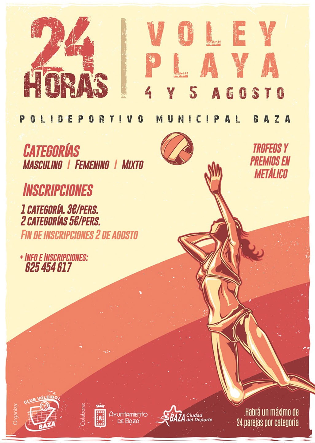 Este clásico torneo veraniego se lleva se celebrará en las instalaciones del Polideportivo Municipal, contando con la organización del Club Voleibol Baza en colaboración con el Ayuntamiento de la ciudad y para el que se ha establecido un máximo de 24 parejas por categoría.