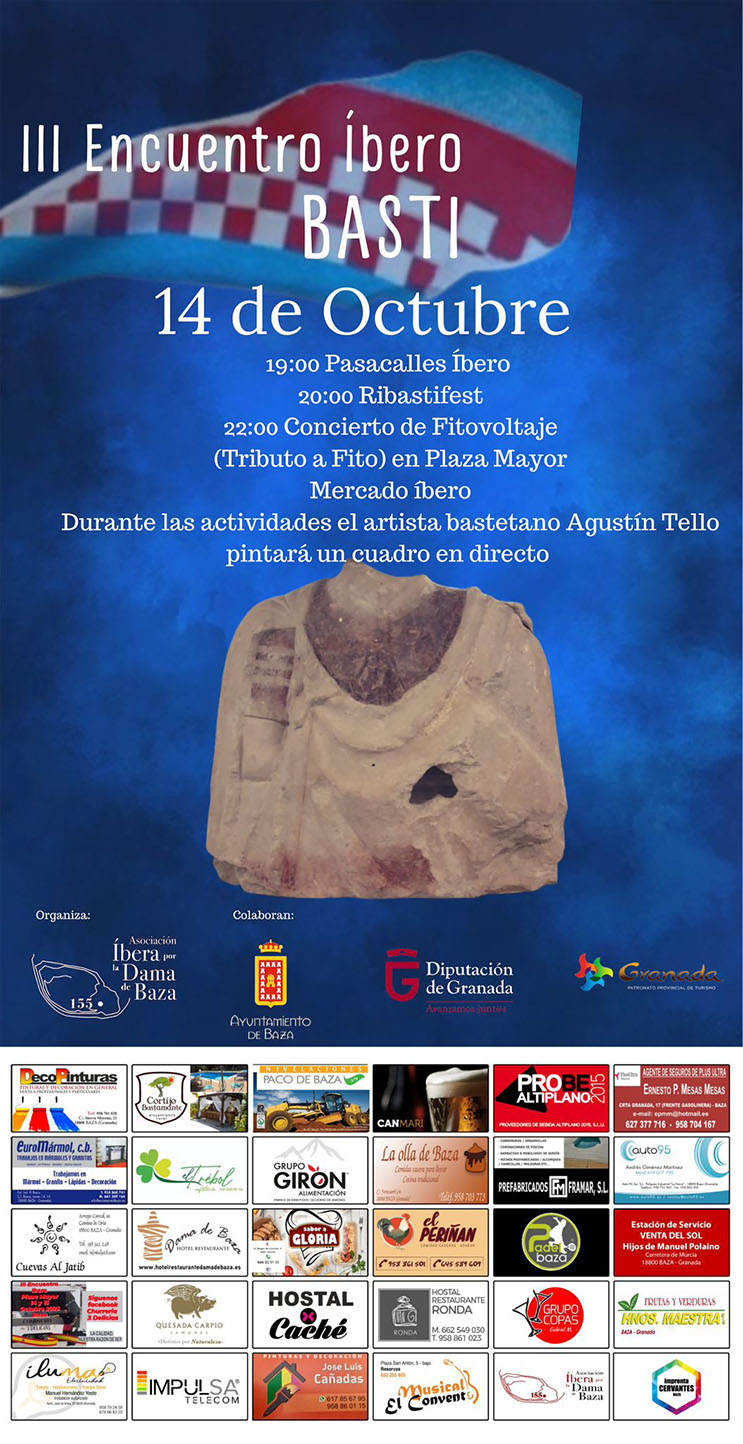 La Asociación Íbera por la Dama de Baza organiza el III Encuentro Íbero en Basti durante el fin de semana del 14 de octubre. La Asociación Íbera por la Dama de Baza ha organizado, con la colaboración del Ayuntamiento de Baza, el III Encuentro Íbero en Basti que se celebrará el fin de semana del 14 de octubre y en el que participarán grupos íberos de diversas procedencias.