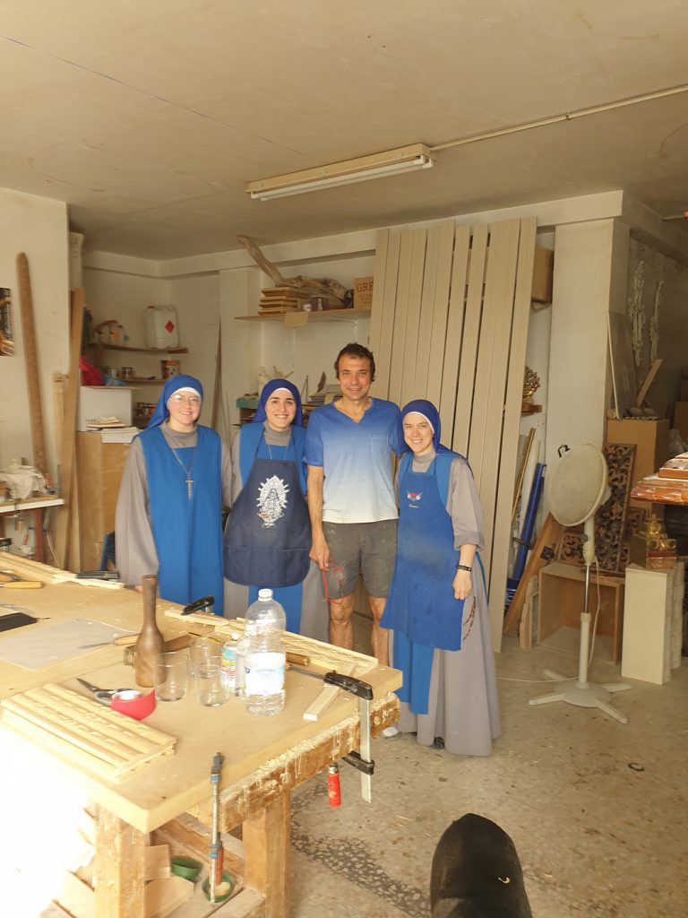 La idea parte cuando conocen los vídeos del Curso de Talla que Esteban viene difundiendo entre sus seguidores repartidos por todo el mundo y que también llegaron a ser vistos por este grupo de religiosas, a pesar de que es una congregación de clausura, algo que no les impide vivir en un mundo actual y hacer uso de los recursos que ofrecen las nuevas tecnologías, a lo que unen la talla de iconos en su convento, algo que esperan mejorar ahora, tras su visita a tierras bastetanas y compartir un par de semanas de trabajo en el taller de la calle San Lázaro de nuestra ciudad.