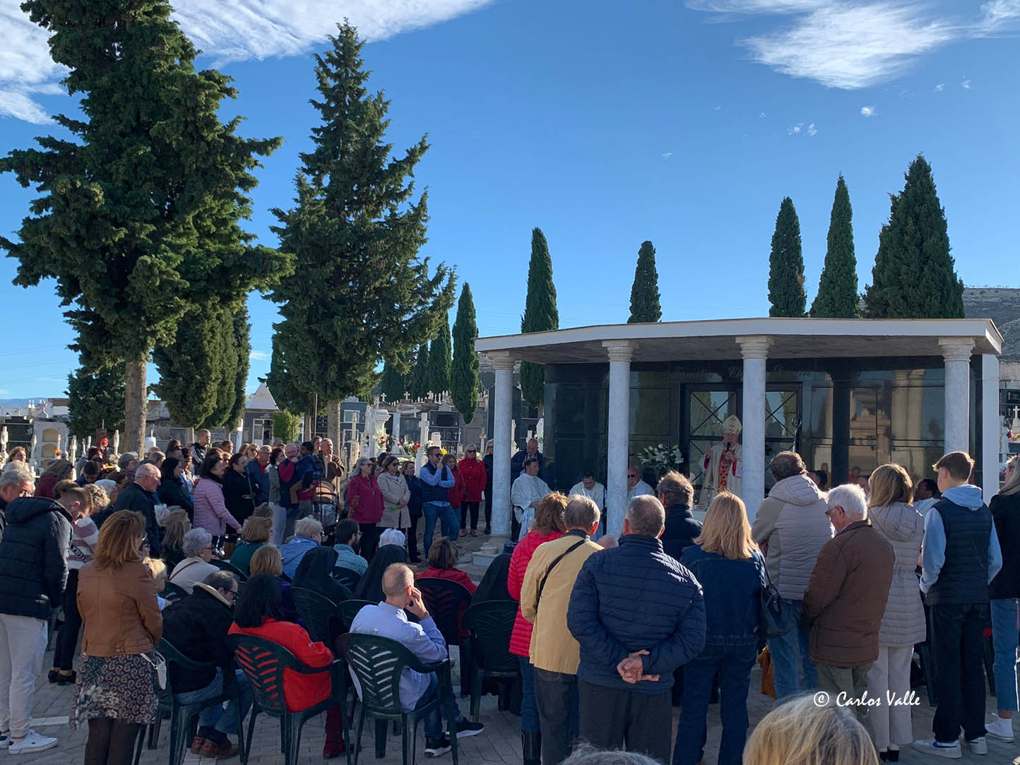 Y así pasó un año más, en el que el Ayuntamiento atendió los viajes del autobús urbano hasta el camposanto y donde la mañana del día 1 se repetía la actuación musical de “In Crescendo”, que volvió a ser muy del agrado de los visitantes. Buena acogida también para la celebración de la Misa que presidía el obispo de la diócesis de Guadix-Baza, acompañado por el clero local y que tuvo una muy buena aceptación.
