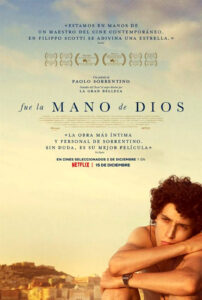 La Asociación Bastetana “Cine y chocolate” proyecta el domingo 5 de noviembre, en el Salón Ideal y a las 10h30’, la película “Fue La Mano De Dios” (2021) de Paolo Sorrentino. En una entrevista hecha en Diario Público, cuando salió el filme, Paolo Sorrentino (Nápoles, 1970) afirma que la mano de Dios “es una película sobre la sensibilidad. Y flotando por encima de todo, tan cerca y tan lejos, está Maradona, ese ídolo fantasmal, de metro setenta y cinco, que parecía sostener la vida de todos en Nápoles, o al menos la mía”. Y es que la película versa sobre este genio indiscutible del balompié, es decir, sobre su influencia mítica en el desarrollo de la historia. Una historia, finalmente, que no es otra que la del prestigioso realizador napolitano.