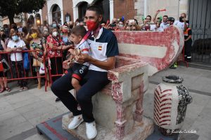 También apareció por el escenario la Dama de Baza, personificada una vez más por Vanessa Mesas, quien se encargó de hacer una de las cosas que no se hicieron en Tokio: colgar del cuello del ciclista la medalla que había ganado en tan buena lid.