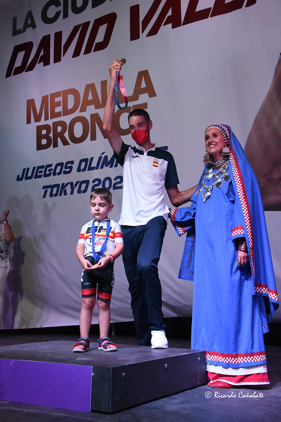 Al llegar a la Plaza Mayor, los ciclistas hicieron un “pasillo” al ganador de la medalla de bronce en Tokio 2021, para dirigirse al antiguo Ayuntamiento y hoy Museo Municipal, donde la Corporación Municipal le hizo un segundo “pasillo” por el que Valero se dirigió al antiguo Salón Capitular, para firmar en el Libro de Honor de la ciudad, tras lo que salió al balcón para saludar a la multitud que le esperaba en la Plaza Mayor.