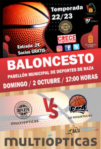 El próximo domingo se inicia la Liga de la Primera Nacional de Baloncesto en la que el Multiópticas Baza recibe al CB Roquetas a las cinco de la tarde. Este domingo 2 de octubre, a las 17 horas, debutará el equipo del Multiópticas Baza en la Primera Nacional Andaluza de baloncesto, comenzando con el recibimiento a todo un clásico de la categoría, como es el CDB Roquetas, un equipo integrado por un grupo joven consolidado, que la temporada pasada disputó el campeonato de España Junior y que unido a algunos jugadores veteranos va a dar mucha guerra en la competición de este año.
