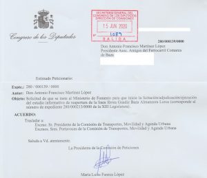 Esta propuesta ha sido tomada en consideración por la Comisión de Peticiones del Congreso de los Diputados, pasando a ser tratada por la Comisión de Transportes, Movilidad y Agenda Urbana de dicha cámara representativa, lo que supone mantener viva la esperanza de esta justa y necesaria reivindicación para unas comarcas que no merecen seguir siendo discriminadas por los poderes públicos.