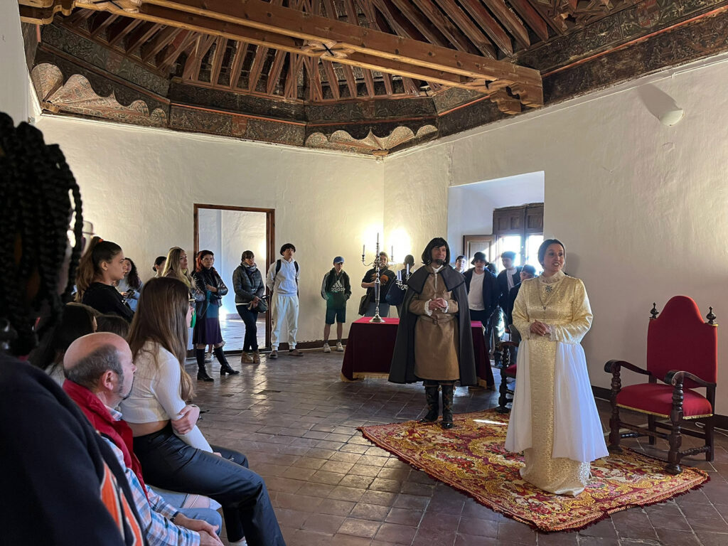 Los estudiantes de Erasmus visitan el Palacio de los Enríquez con la teatralización de Mas Drama. Alumnado y profesorado participante en los proyectos Erasmus del Colegio Divino Maestro BAZA y del IES José de Mora han tenido ocasión de disfrutar de una visita teatralizada al Palacio de los Enríquez a cargo de Más Drama Interpretación de patrimonio.