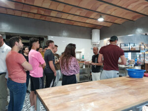 Por otro lado, se ha visitado la experiencia de la Asociación Subbética Ecológica, organización que es muy reconocida por practicar la economía del bien común. Los alumnos tuvieron la oportunidad de conocer la forma organizativa y recorrer parte del pueblo de Cabra siguiendo la ruta del curso de su río, un afluente que permite una tradición hortelana en dicho municipio. Asimismo, se visitó la central de productos, donde reciben y preparan los alimentos que luego distribuirán a hogares, restaurantes y tiendas de alimentación, en un radio de 150 km. También se visitó la encomienda de la asociación y su obrador compartido.