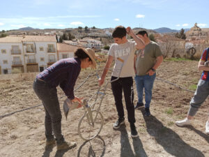 Concretamente se están realizando ya los talleres formativos que se extenderán durante 3 meses y la implantación del huerto ecológico, que se ubica en el municipio de Orce. En el huerto ya se están cultivando patatas, ojo de perdiz y patatas moradas, además de perejil, albahaca, girasol, caricca y habichuela moruna y lleva en funcionamiento desde el 20 de marzo. En el proyecto están participando 15 jóvenes de la comarca, además de miembros de la comunidad educativa del IES Alquivira. Igualmente, se ha realizado ya la primera visita a experiencias piloto de otros territorios en agricultura ecológica, no sólo en producción sino también en transformación y comercialización de los productos, en este caso concreto en Cabra.
