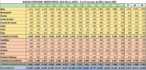 Y por lo que se refiere a los datos aportados por el AGS Nordeste, referidos al día de ayer, el Hospital de Baza tenía 11 pacientes Covid ingresados. Además, y con fecha del miércoles 2 de febrero, había 26 profesionales sanitarios de baja por la pandemia; también ese día se notificaron 18 test y 79 PCR como positivos y se administraron otras 590 dosis de la vacuna.