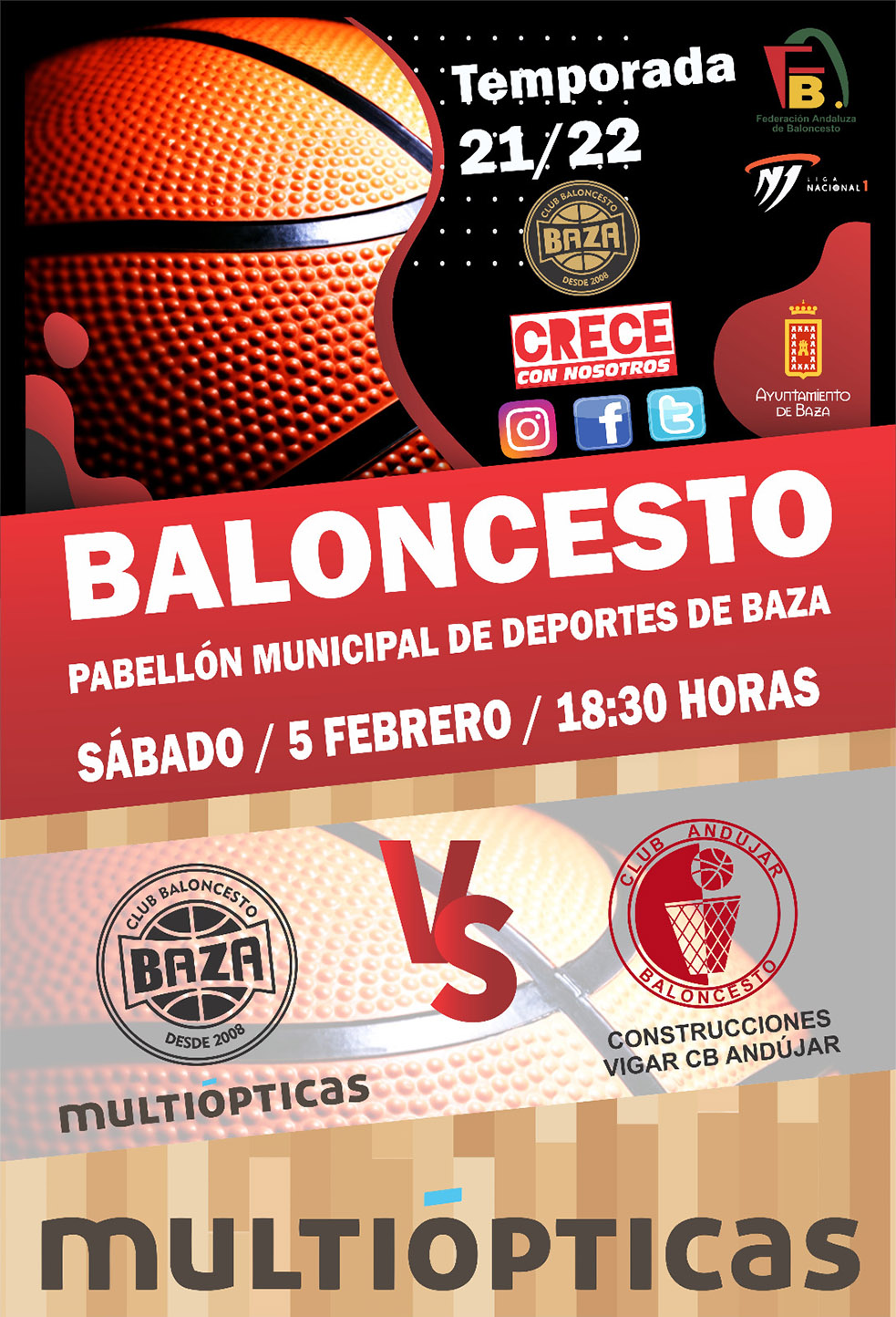 El Multiópticas Baza tiene otra cita con la afición local para recibir el próximo sábado al CB Andújar. Nueva jornada en la Primera Nacional Andaluza, con el Club Baloncesto Baza recibiendo a un conocido rival con prestigio en toda la comunidad, como es el CB Andújar, filial de su actual equipo en Liga EBA, por lo que está compuesto de jóvenes acompañados de algún veterano y con jugadores que doblan entre el Nacional y el EBA. Así, se espera un equipo que tiene un ritmo de competición muy alto y ante el que habrá que tener mucho cuidado a la hora de cerrar un partido importante para mantenerse en el grupo de cabeza.