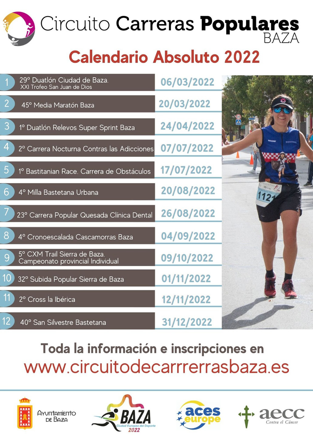 En la presentación que se realizaba en la mañana de ayer, alcalde y concejal destacaban la inestimable colaboración de entidades como la Asociación Española Contra el Cáncer (AECC), cuyo presidente en Baza, Paco Manzanera, ha recordado los beneficios de mantener hábitos saludables y ha manifestado la voluntad de su agrupación de colaborar en todo lo que esté dentro de sus posibilidades. También de los clubes locales Bastitania, Ociodeporte Tíjola-Baza y Atletismo Baza. Precisamente Loli Valdivieso, del Club Bastitania, ha animado a participar a toda la población, especialmente a las mujeres, y ha resaltado la enorme diversidad de pruebas programadas para todo tipo de corredores y edades.