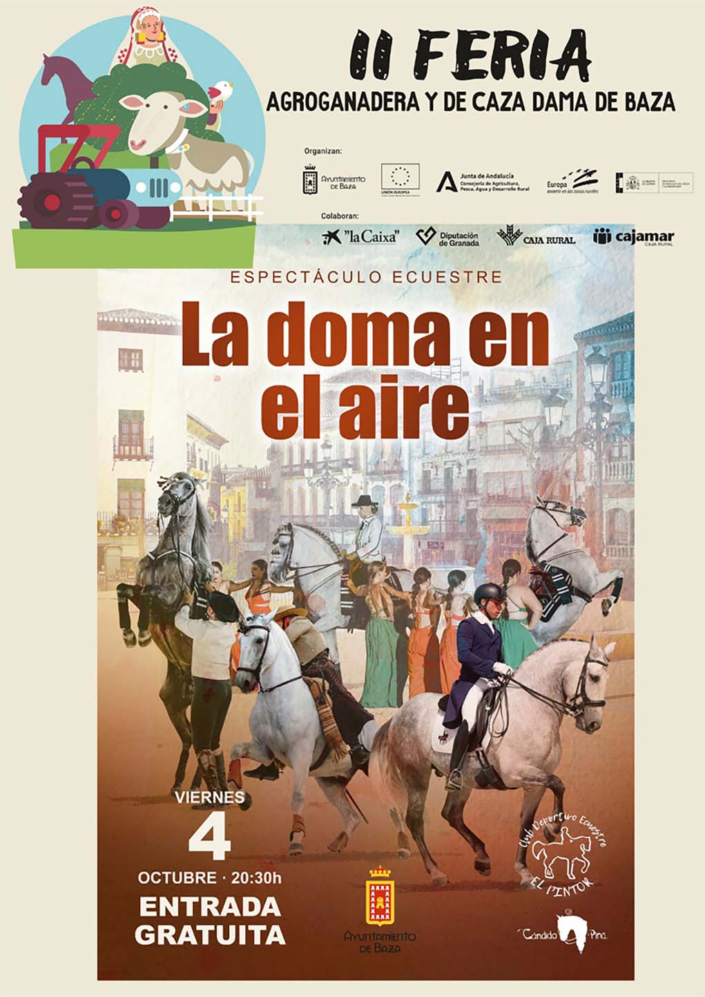 Durante la noche, se ofrecerán tres espectáculos, dos de ellos ecuestres. A las 20:30 horas, el Club Ecuestre El Pintor realizará una exhibición con sus mejores ejemplares, seguida del espectáculo «La Doma en el Aire» de la Escuela Ecuestre de Cándido Pina. La noche concluirá con la actuación del DJ Edu RSPR. El sábado 5 y domingo 6 de octubre continuarán las actividades, con exposiciones de rehalas de caza, paseos de colleras, actuaciones flamencas y conciertos de música.
