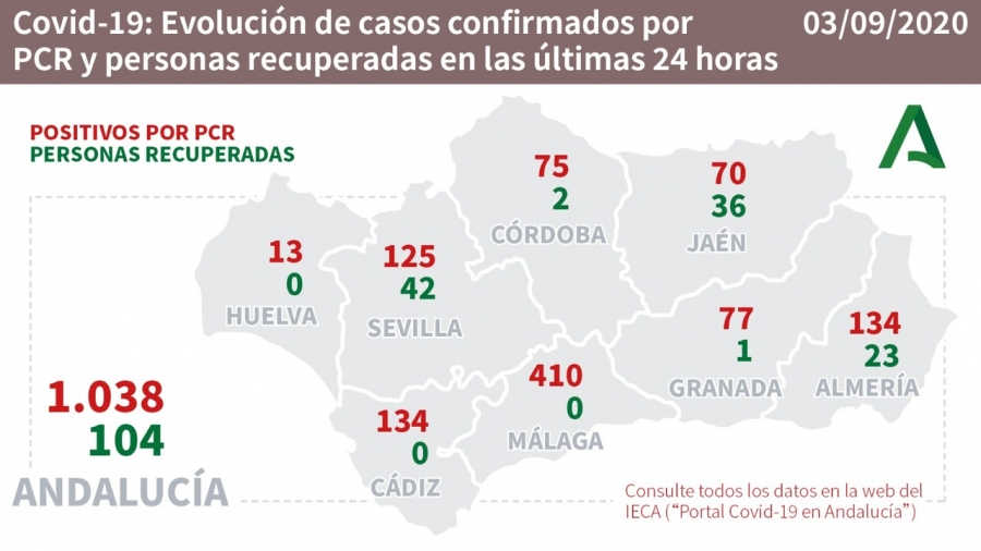 En cuanto a Andalucía, se superan el millar de casos en las últimas horas con 1.038 casos en total, el dato más alto desde marzo. Solo en Málaga se han registrado 410 casos en las últimas horas.