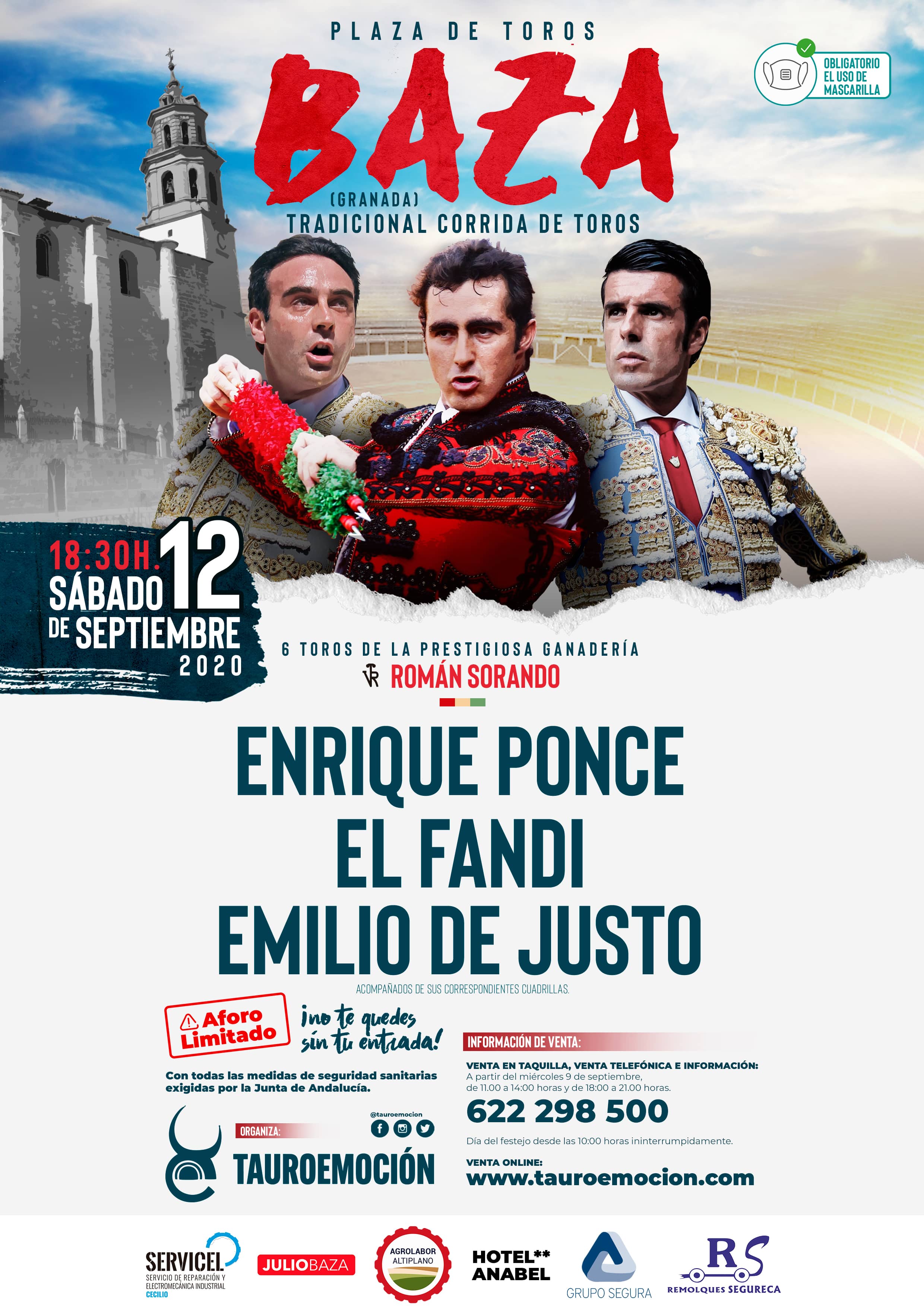 En declaraciones realizadas por el alcalde de Baza, Pedro Fernández, en nombre del equipo de gobierno, se instaba al delegado en Granada de la Junta de Andalucía, Pablo García, a que suspendiera el festejo programado por la empresa Tauroemoción. Y eso, a tan solo 24 horas de que Alberto García, gerente de dicha empresa, diera a conocer el cartel de la corrida de toros con astados de Román Sorando y los diestros Enrique Ponce, David Fandila El Fandi y Emilio de Justo.