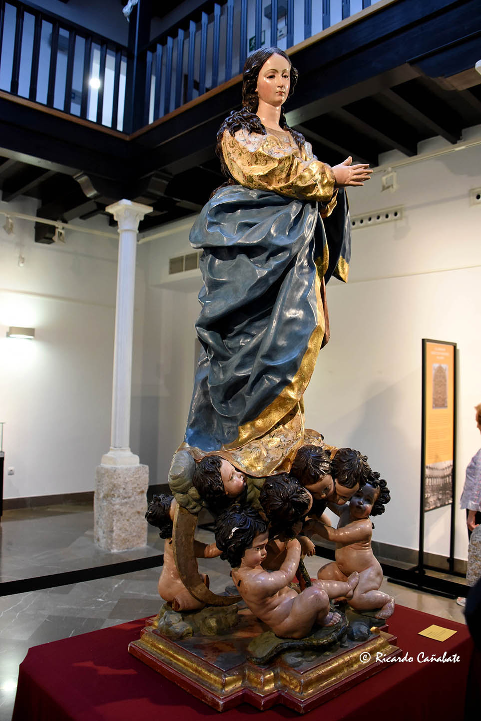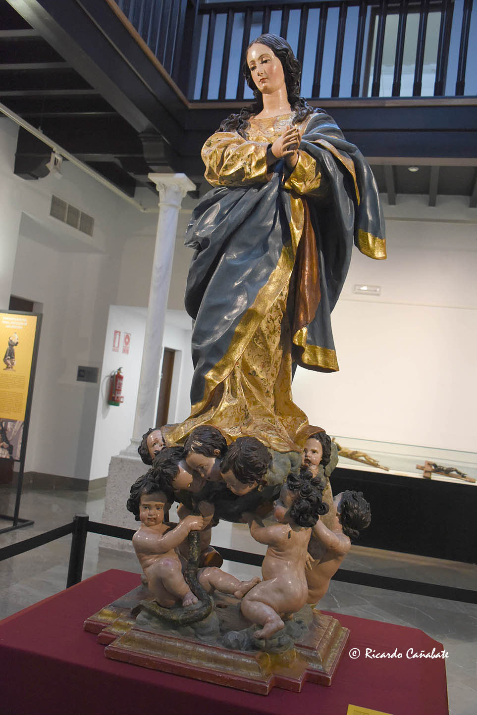 Un acto que sirvió también para contemplar la escultura original de José de Mora dedicada a la Inmaculada, la cual tiene su sede en la catedral accitana y ha sido cedida para esta muestra por el obispado de nuestra diócesis. Una escultura que se alza imponente en el centro del patio del Museo Arqueológico Municipal para presidir esta muestra y que queda a escasos centímetros de quienes visitan esta exposición y pueden acercarse a contemplar hasta el más mínimo detalle. Se exponen, además, cuatro crucifijos relacionados con esta época y próximos al Cristo de la Misericordia del escultor bastetano.