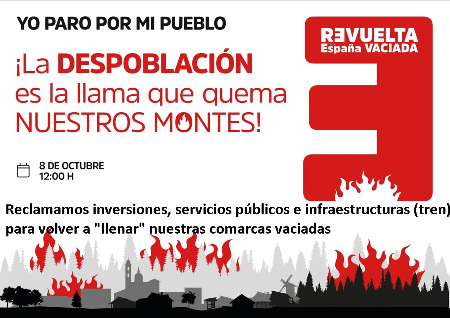 La Revuelta de la España Vaciada se moviliza contra los incendios forestales y la despoblación: reclaman inversiones, servicios públicos y tren. Este es el titular del comunicado que nos han remitido desde las asociaciones Amigos del Ferrocarril Comarca de Baza y Comarca de Guadix por el Tren, el cual reproducimos a continuación, junto a la imagen que lo acompaña: