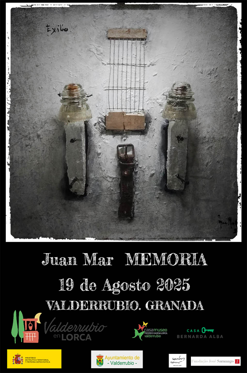 Valderrubio acoge “Memoria”, la nueva exposición del castrileño Juan Mar, que transforma el arte en herramienta de reparación histórica. A partir del próximo 19 de agosto, el municipio de Valderrubio se convierte en epicentro de la memoria histórica con la inauguración de “Memoria”, una ambiciosa exposición del artista granadino Juan Mar que invita a reflexionar sobre el pasado desde una mirada profundamente humana. La muestra podrá visitarse hasta el 30 de septiembre en dos espacios simbólicos de la localidad: la Casa Museo de Federico García Lorca y la Casa Museo de Bernarda Alba.
