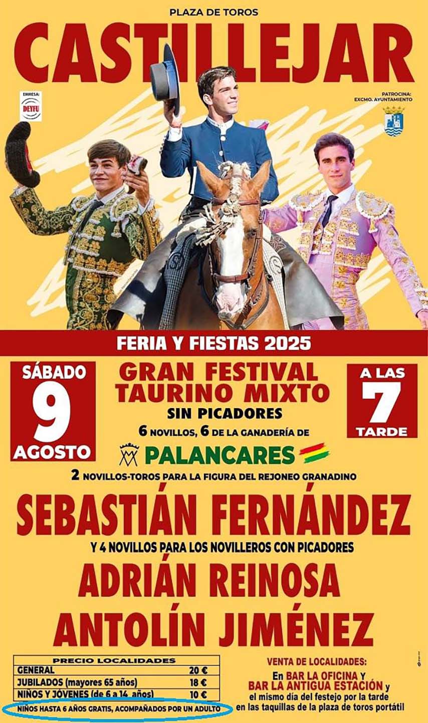 La Fundación lamenta que el Ayuntamiento de Castilléjar haya optado por facilitar la entrada de menores a este tipo de eventos, ignorando lo que califican como un consenso internacional y científico en torno a la necesidad de proteger a la infancia de este tipo de exposiciones. A pesar de la polémica, el cartel sigue adelante con la novillada anunciada para las 19:00 horas, con el rejoneador Sebastián Fernández y los novilleros con picadores Adrián Reinoso y Antolín Jiménez como protagonistas.