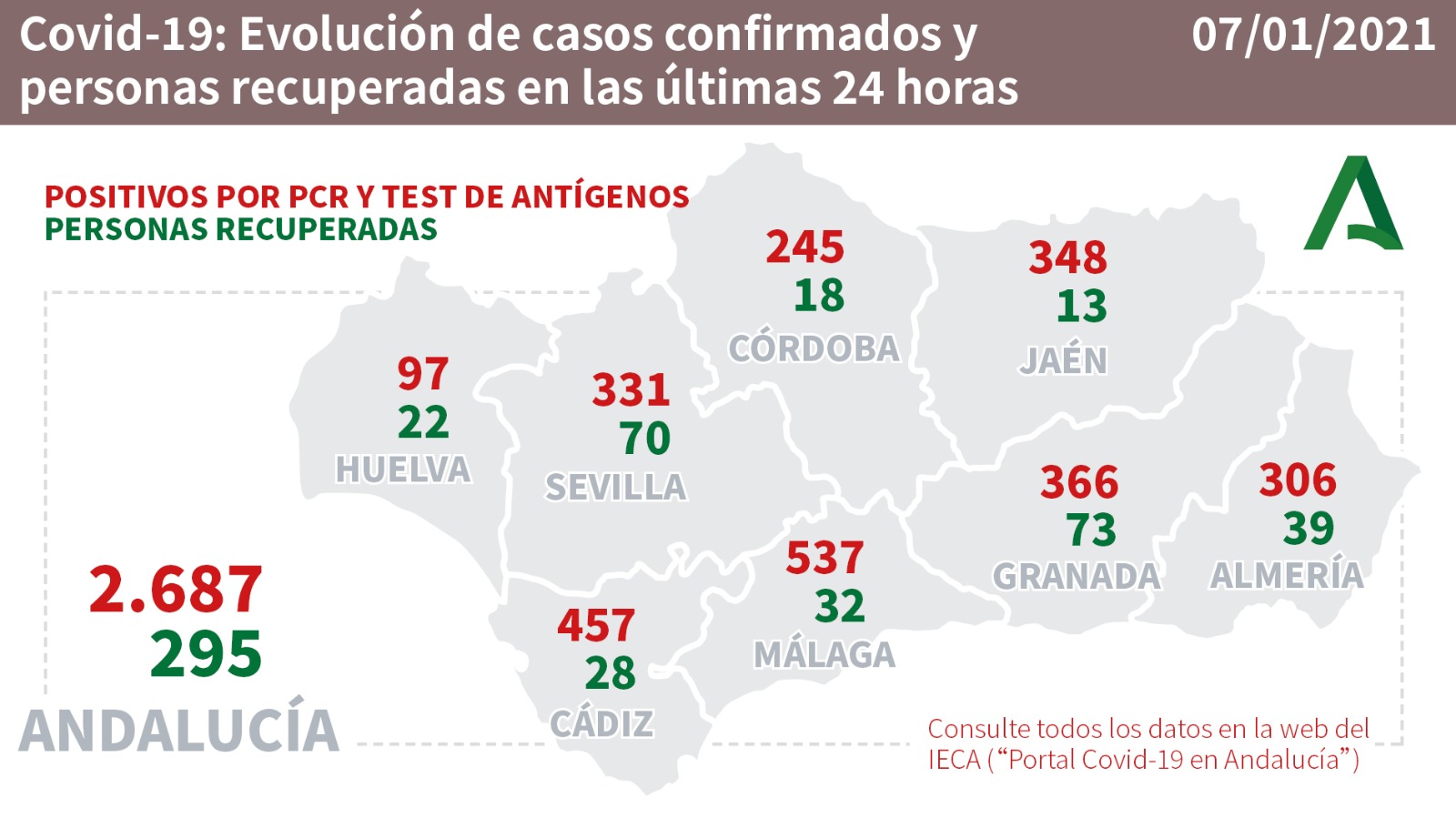 Es, además, el segundo día consecutivo por encima de los 300 contagios confirmados por pruebas diagnósticas fiables, algo que no ocurría desde mediados de noviembre y a lo que se ha de añadir la irregularidad de los datos del Instituto de Estadística y Cartografía de Andalucía que bien pudieran modificar estas cifras, aunque a partir de datos ofrecidos por la Junta, la tasa de incidencia en los últimos 14 días en la provincia de Granada estaría ya por encima de los 200 casos y muy cerca de los 250 por cada 100.000 personas. También vuelve a crecer el número de personas ingresadas, con 9 más, de las que 3 fueron a Cuidados Intensivos, totalizando 137 personas en régimen ordinario y 48 en UCI, es decir, 185 en total, mientras que han sido 73 los nuevos curados, mejorando la cifra de los últimos días.