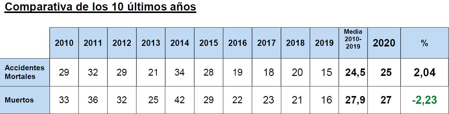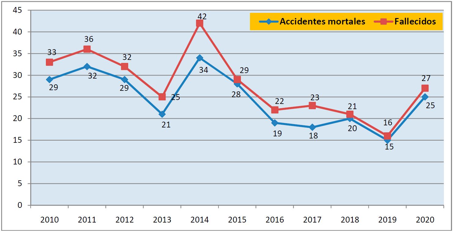 Datos todos ellos que se han ofrecido desde la Subdelegación del Gobierno en Granada y de cuyo análisis se deduce que, si bien el número de accidentes con víctimas ha disminuido de 886 en el año 2.019 a 563 en el año 2.020, el número de accidentes mortales ha aumentado de 15 en el año 2.019 a 25 en el año 2.020, lo que supone un aumento del 66,66%, así mismo el número de fallecidos ha aumentado en 11, pasando de 16 fallecidos en el año 2.019 a 27 en el año 2.020, que supone un aumento del 68,80%. Especialmente negativos los datos de los meses de agosto con 6 fallecidos y diciembre con 5 fallecidos.